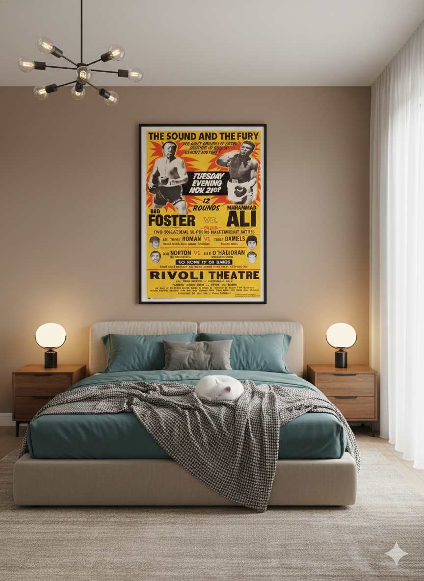 Vintage 1972 boxing poster reflecting the heavyweight era defined by champions such as Muhammad Ali and Bob Foster, when fight nights became global events.