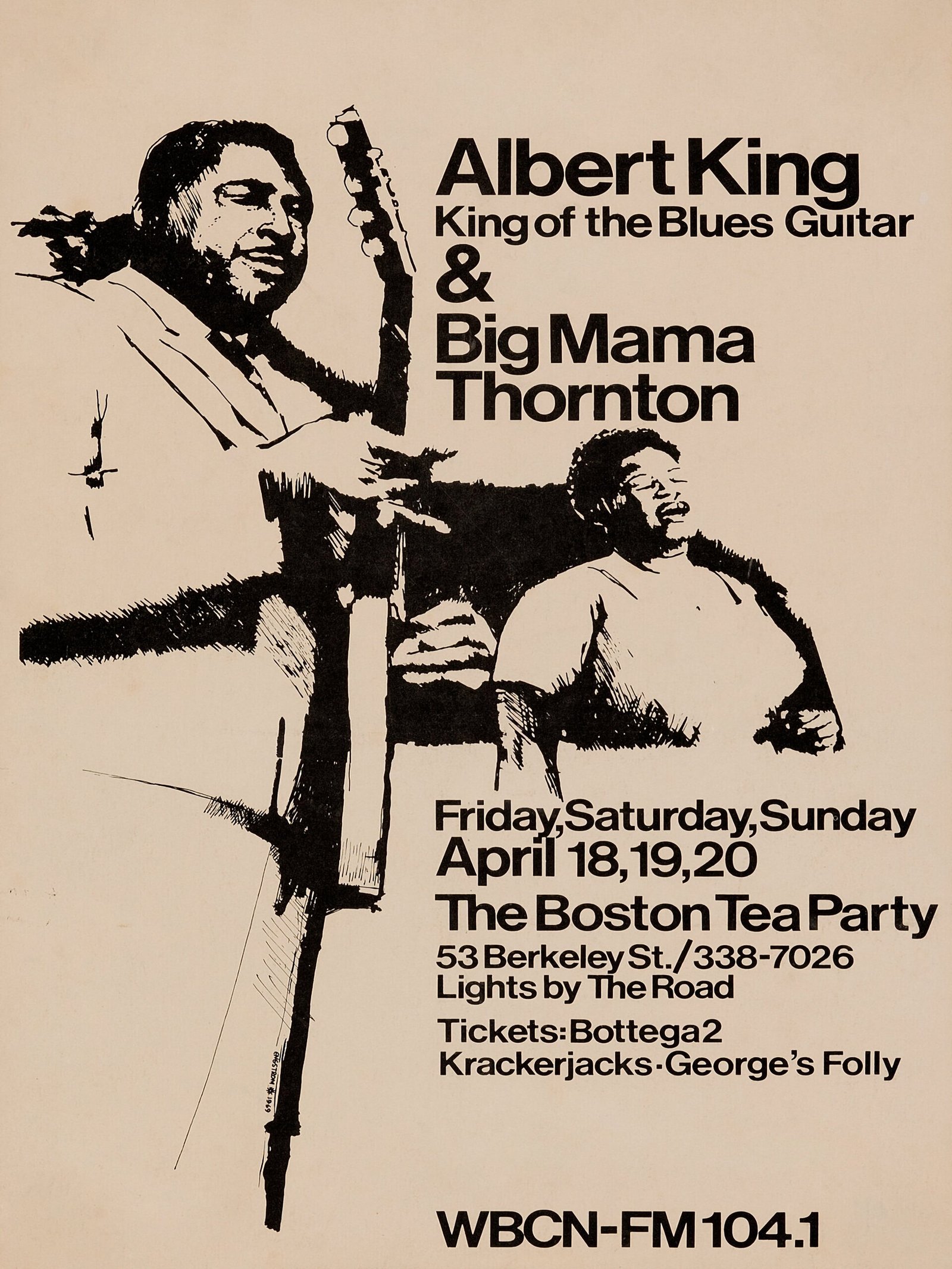 1969 Boston Tea Party concert poster featuring blues legends Albert King and Big Mama Thornton.
