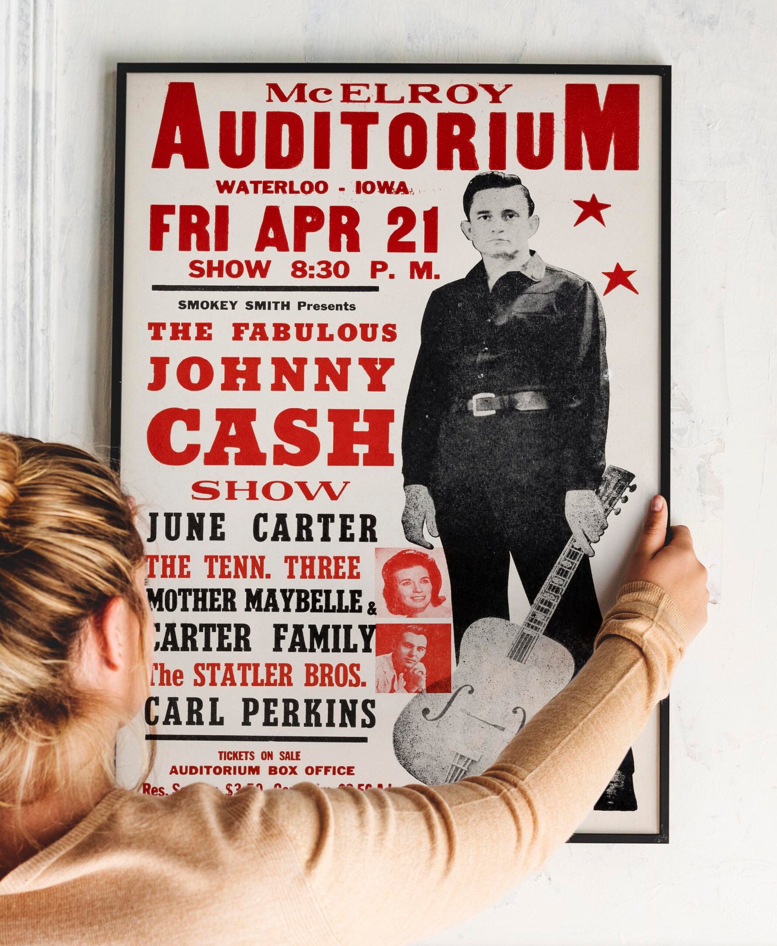 Johnny Cash, June Carter, Carl Perkins 1967 Waterloo, IA Concert Poster.