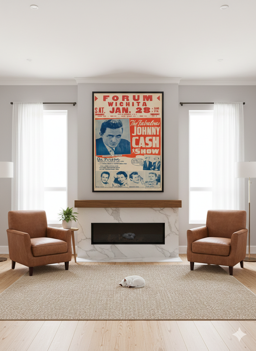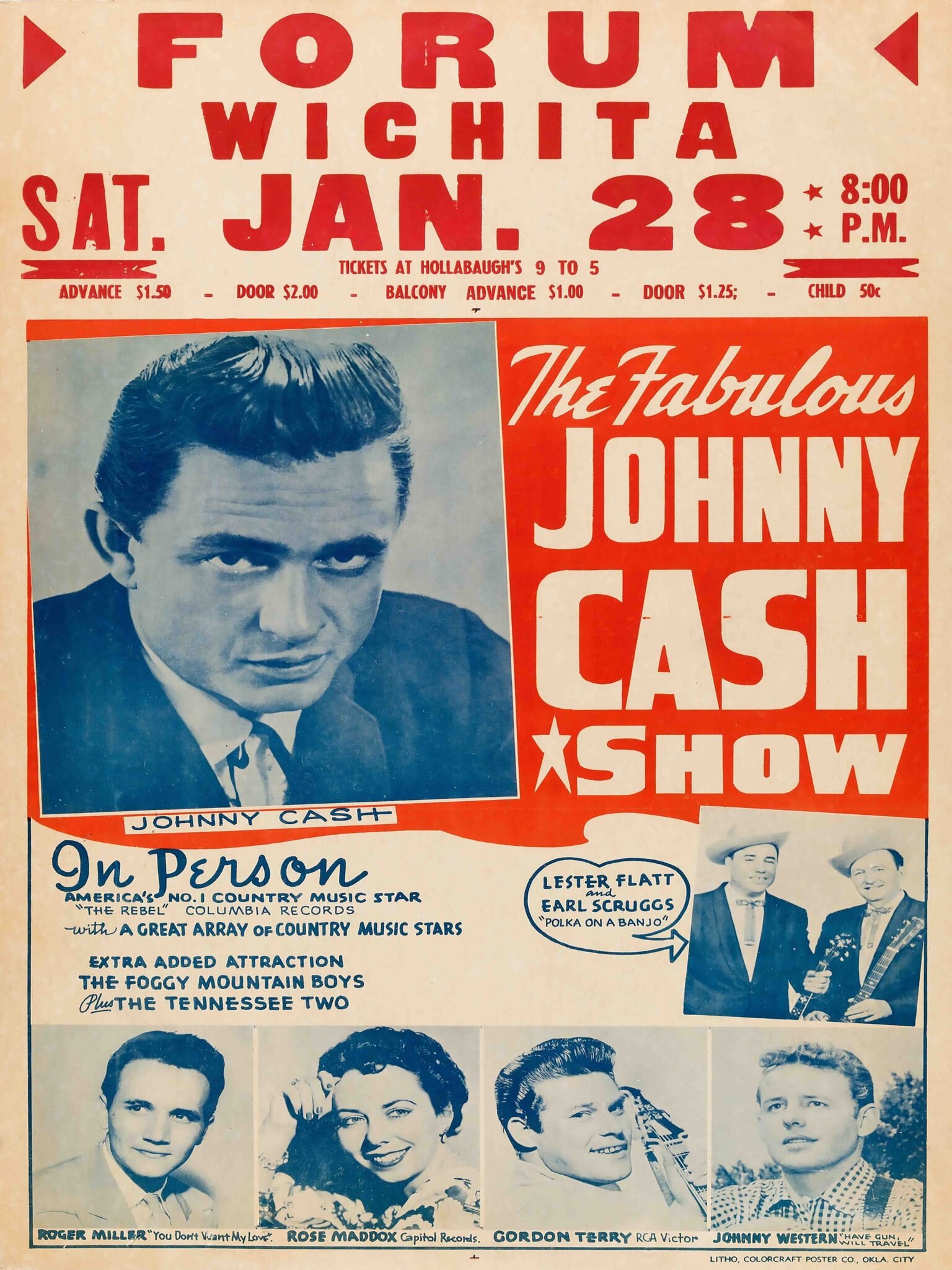 Johnny Cash, Lester Flatt & Earl Scruggs 1961 Wichita, KS Concert Poster