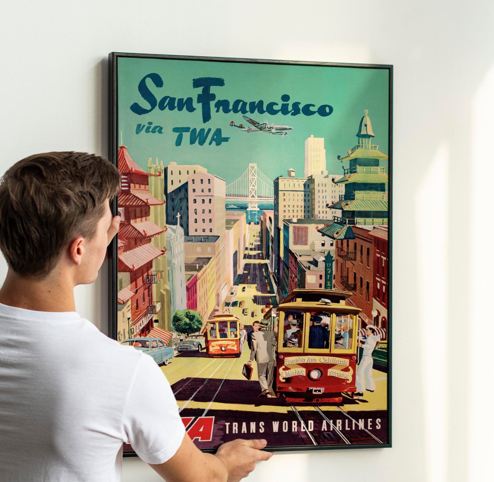 San Francisco Via TWA Trans World Airlines, 1950 Travel Poster