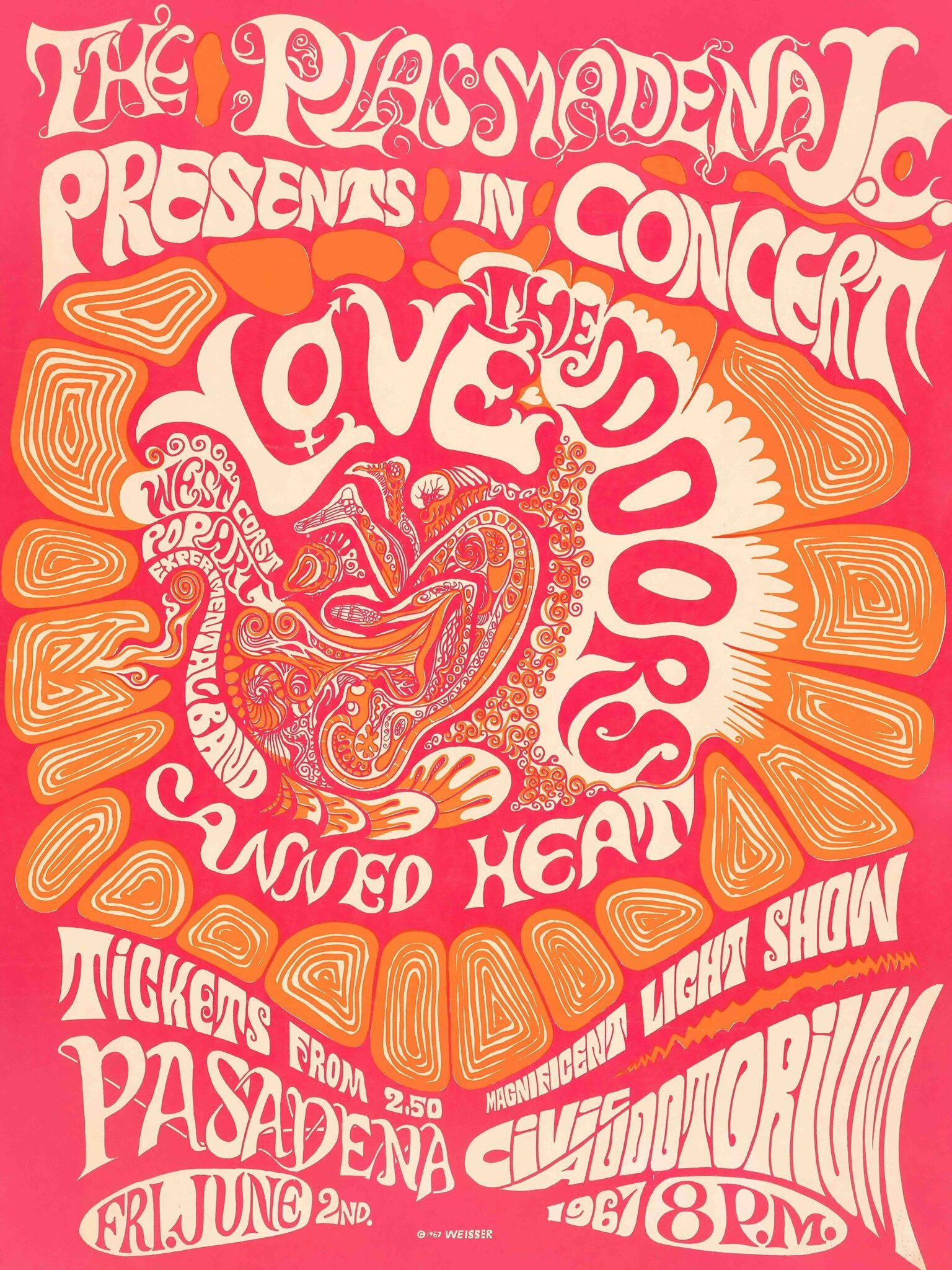Vintage 1967 Rock Concert Poster – The Doors Love Canned Heat Psychedelic Print