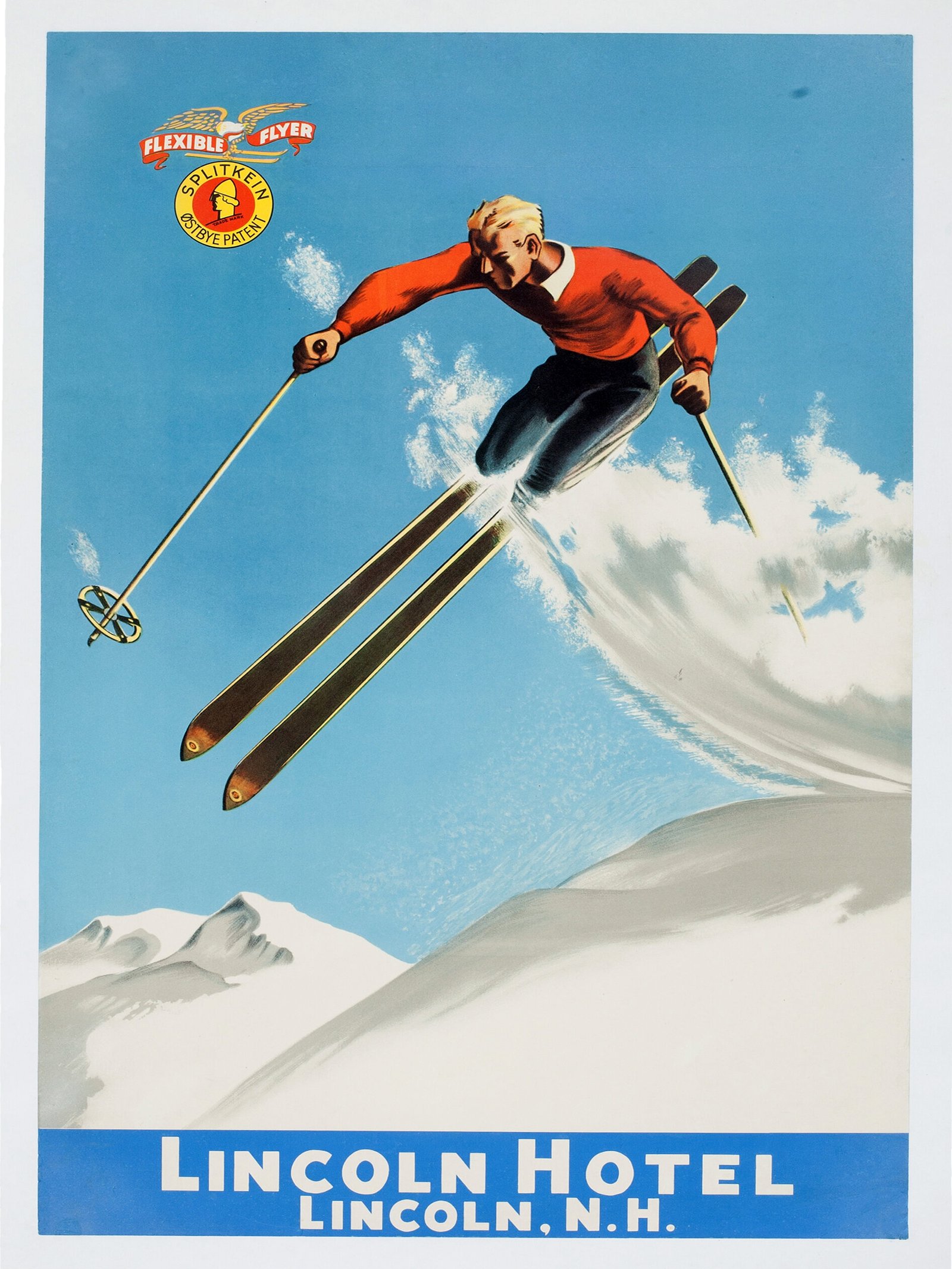 Vintage 1930s Lincoln New Hampshire Ski Travel Advertisement Poster